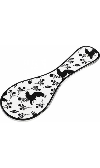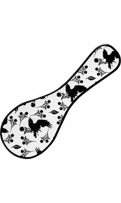 A beautiful spoon rest decorated in the elegant Alchemy raven and rose design. This spoon rest will be a beautiful addition to your kitchen either by the hob or hanging on the wall. This darkly elegant design is also presented on a matching trivet/chopping board and jigsaw coaster/trivet set.