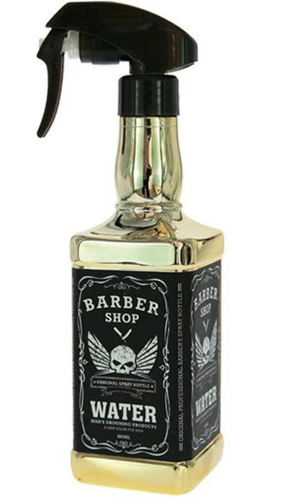 Barber spray bottle with a stylish whiskey bottle look! Featuring superfine vaporization, this bottle will also spray non aerosol hair lacquer and setting lotion.