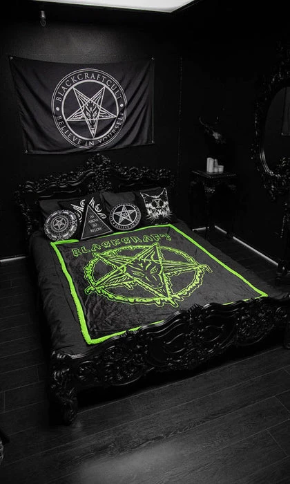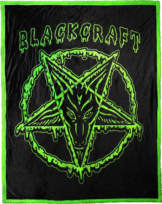Add a touch of darkness to your bedroom or lounge with the Slime Baphomet Sherpa Blanket!