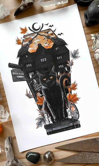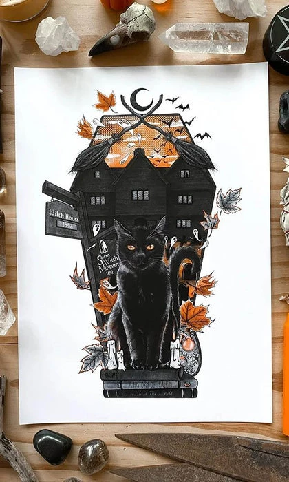 High Quality A4 print of Ghosts of October Black Cat Familiar artwork.