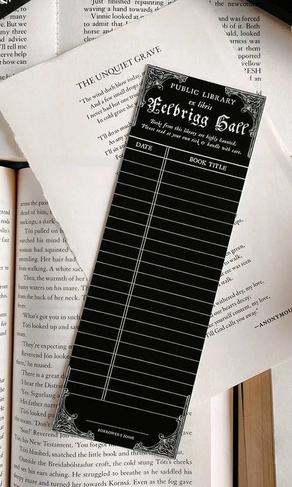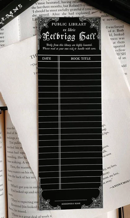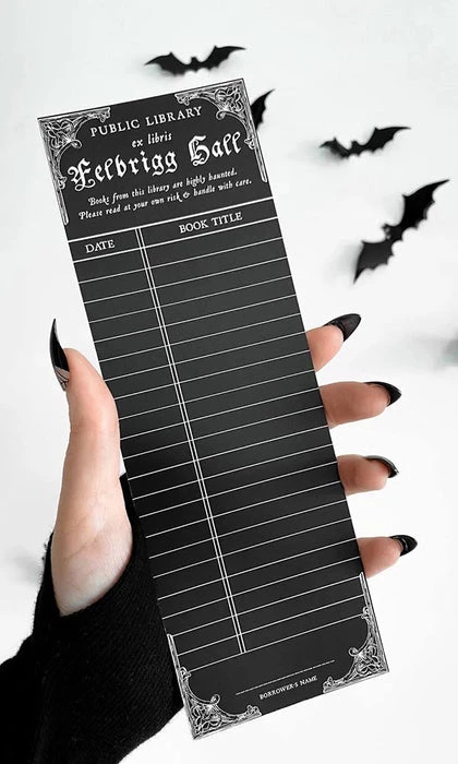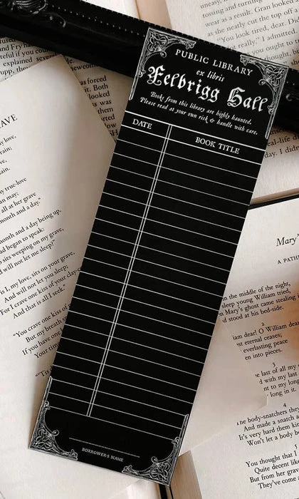 Vintage Haunted Library Card Bookmark inspired by vintage library cards and the real haunted library at Felbrigg Hall, England. Featuring writable material so you can keep track of all of your books as you read them! We recommend using a fine point sharpie or ballpoint pen for the Vintage Library Card Bookmark, or any pen you love that you know won’t smudge!