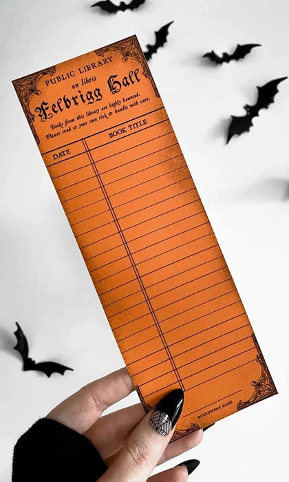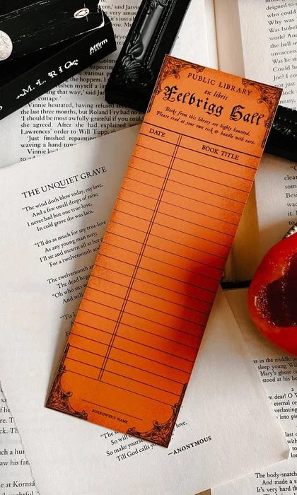 Vintage Haunted Library Card Bookmark inspired by vintage library cards and the real haunted library at Felbrigg Hall, England. Featuring writable material so you can keep track of all of your books as you read them! We recommend using a fine point sharpie or ballpoint pen for the Vintage Library Card Bookmark, or any pen you love that you know won’t smudge!