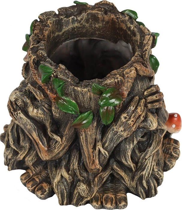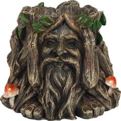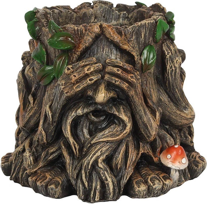 Suitable for indoor or outdoor use, this plant pot features the Green Man in a See, Speak, Hear No Evil post. Small details like toadstools and leaves brighten up this plant pot and add whimsy and character.