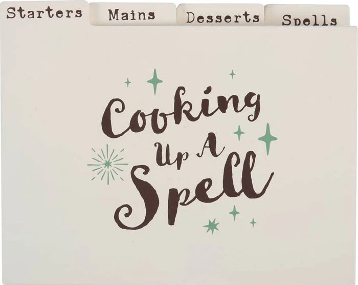 Every kitchen witch needs a safe place to keep her special recipes and favourite spells. This wooden recipe box features an engraved cauldron illustration with ‘Kitchen Witch – Spells and Recipes’ text and MDF inserts for keeping Starters, Mains, Desserts and Spells tidy and organised. Ideal for any witch that loves a homemade meal!ย