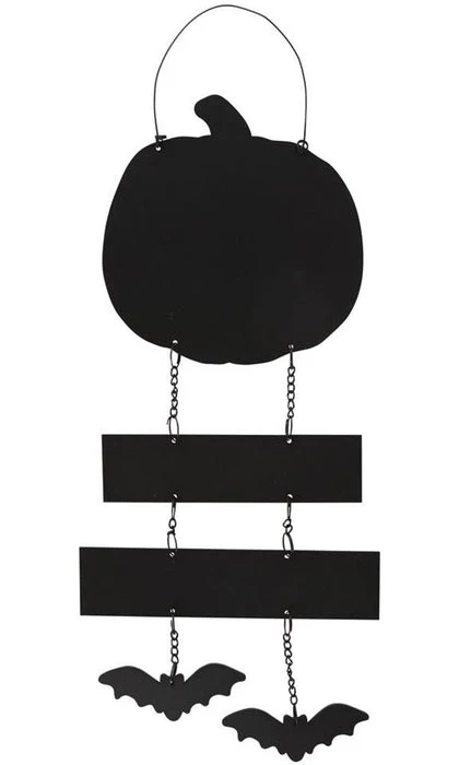 Get ready for a spooktacular halloween with this spooky pumpkin shaped hanging sign. Features a carved pumpkin design above bats and banners with text ‘Happy Halloween’. Hang this on your door or wall to add some cheery decor to your halloween gathering.