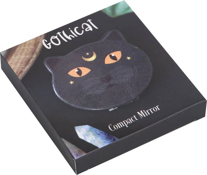 This gothic cat compact features a black cat with a half moon design on the front. This item would make for a great addition to any store as a countertop display item.