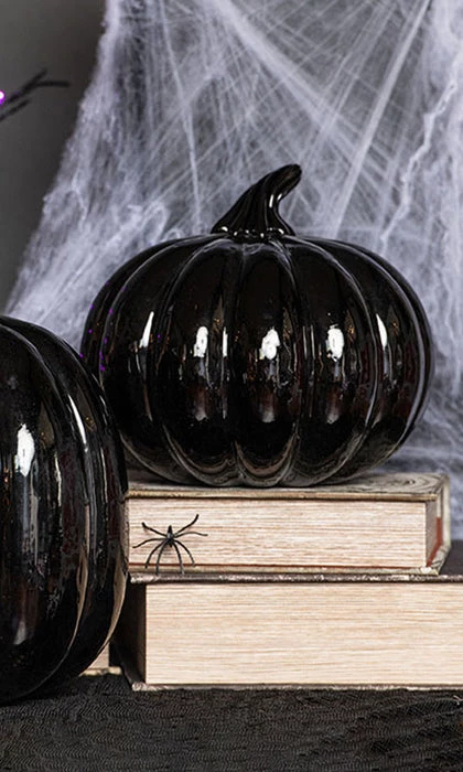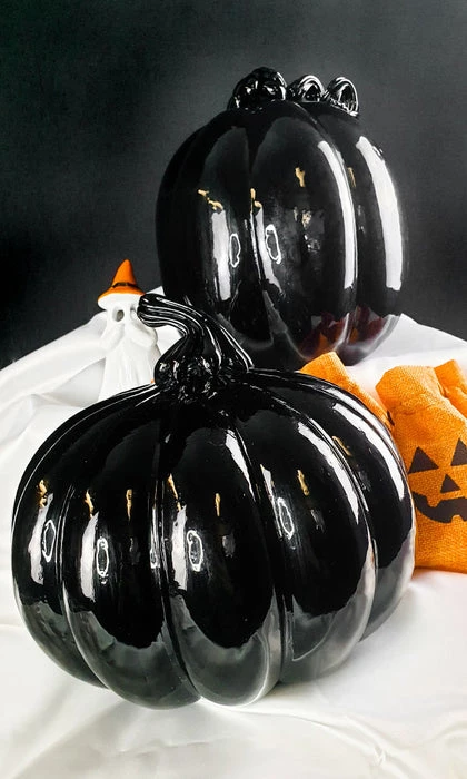 Black Glass Pumpkins are a Fall dรฉcor must have. Display these pumpkins on your coffee table, shelf or entryway to add a festive touch to your space all season long.