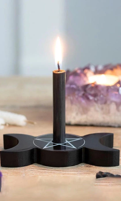 This triple moon candle holder is perfectly sized for holding a single spell candle whilst it burns during casting.
