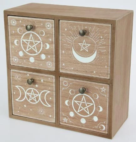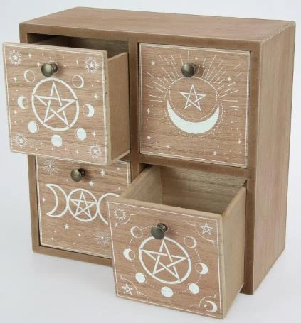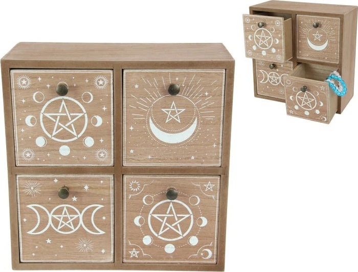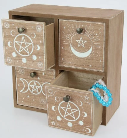 Store your jewellery and favourite trinkets in this wiccan drawers. The perfect size to keep on your desk.