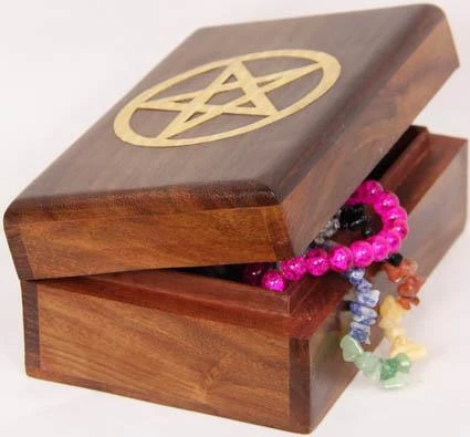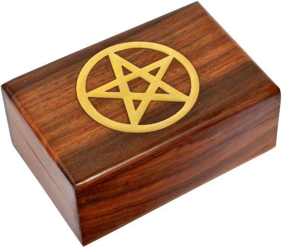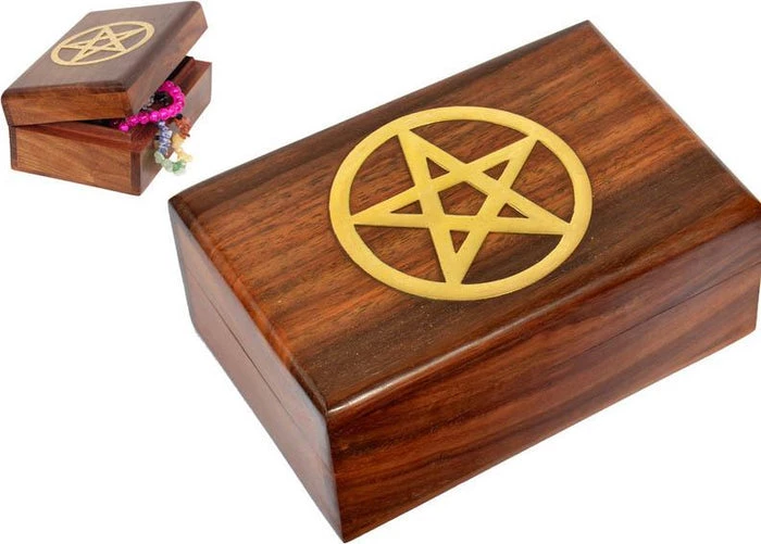 This wooden trinket box features a stunning golden pentagram on the front and is perfect for storing tarot cards, jewellery or treasured trinkets!