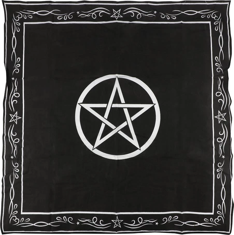 This extra large cotton altar cloth with printed pentagram design is the perfect witchy item to decorate a sacred space.