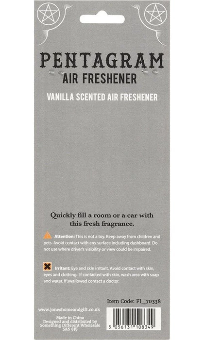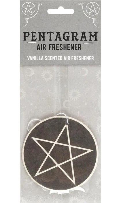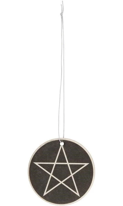 This black pentagram air freshener has a sweet Vanilla scent and is perfect for hanging in the car or in a room to create a fresher atmosphere.