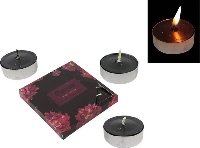 This pack of opium scented candles are both beautifully scented and beautifully presented in floral design packaging. Black in colour, the tealights are made from paraffin wax and have an approx 3 hours burn time per tealight.