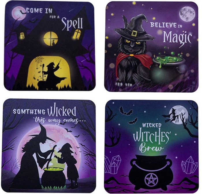 Set of 4 wicked coasters each depicting their own mystical scene