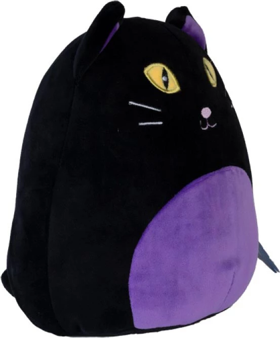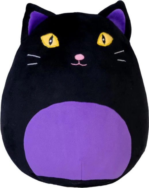 This cute black cat cushion feels like a squishy marshmallow! With bright yellow eyes and a mischievous tail, it is sure to be your favourite plush with its spooky cuteness.