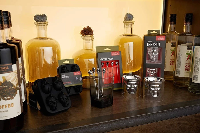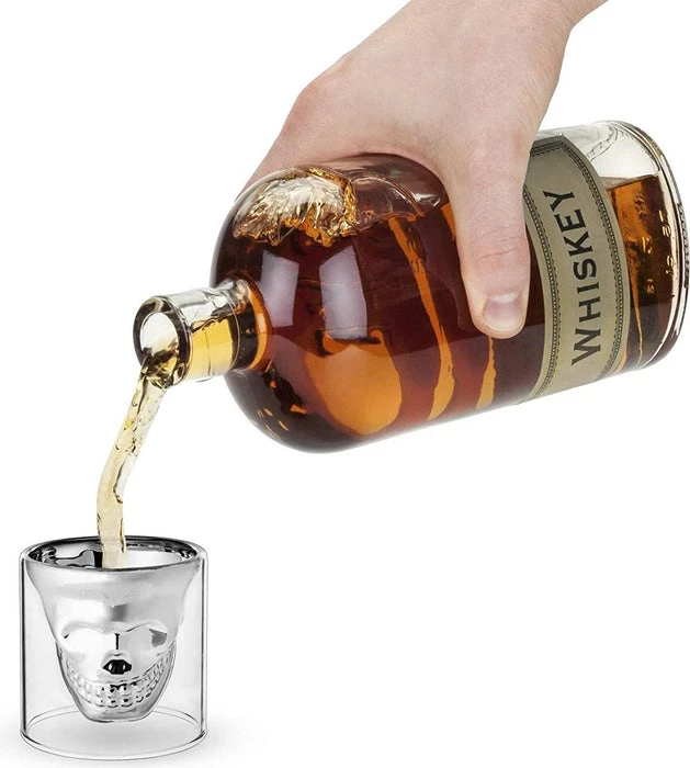 - Made of glass with food safe electroplated skull