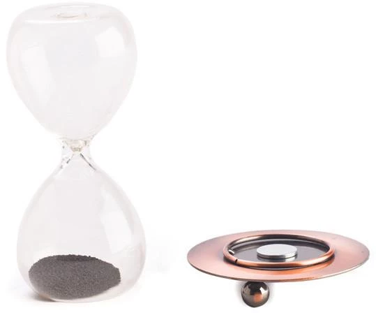 Fun new twist on the class sand timer, replacing sand with metal and magnets.