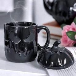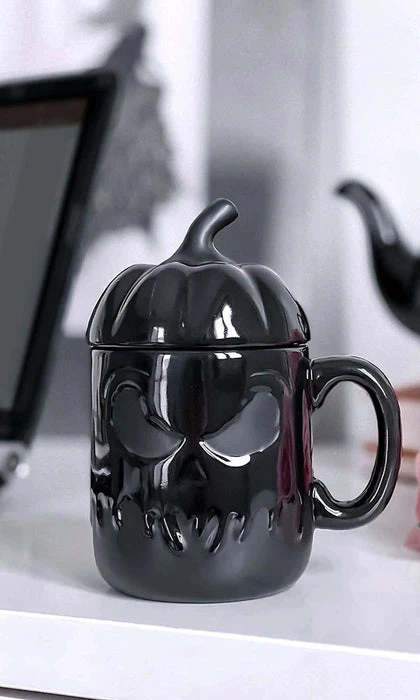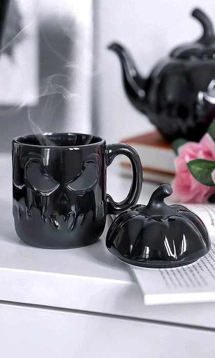 Spice up your life with the βJack Oβlanternβ mug with lid! This large mug is crafted in black ceramic with a high gloss finish and sculpted pumpkin details sure to delight your dark heart.