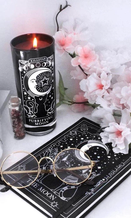 Looking for the perfect gift for your bff, coven pals or just need some extra touches for the crypt? Our new ritual candles are literal perfection – black glass container with all-black soy wax – scented with Spellbinding Berry – and contrasting ‘Purrifying Moon’ graphic on front.