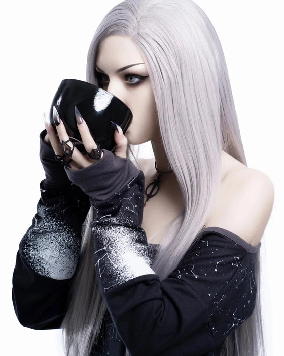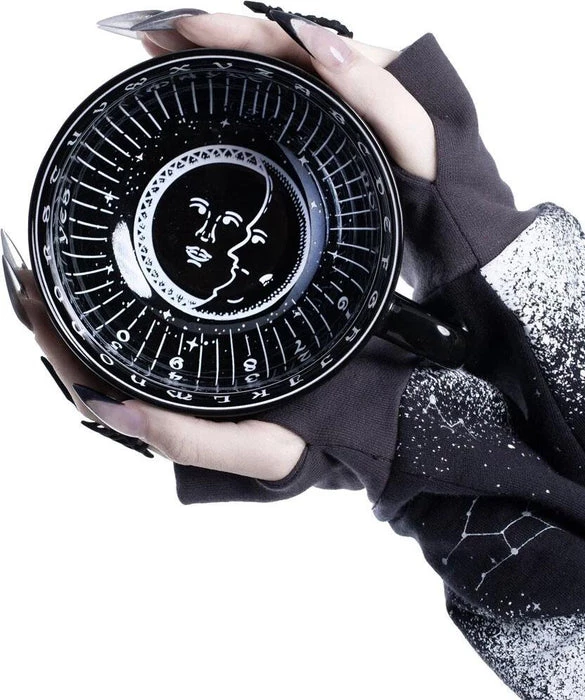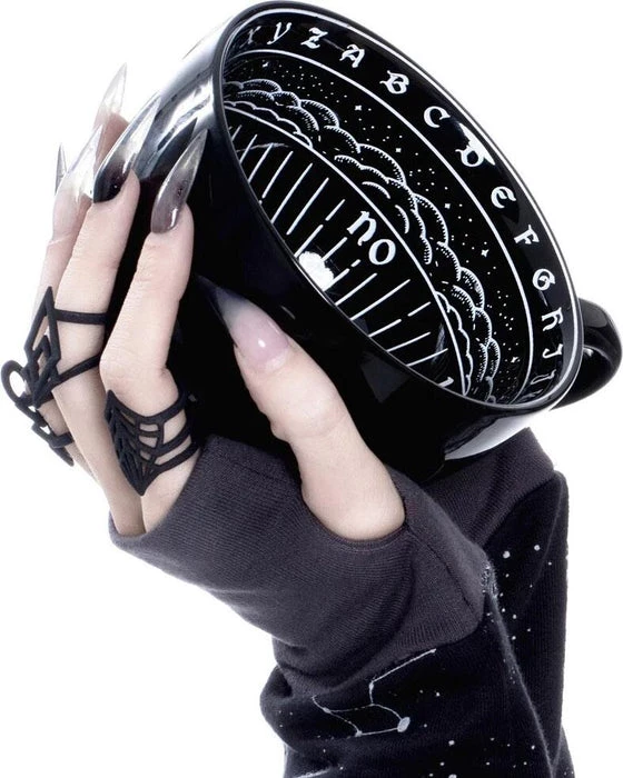 A decadently chic black coffee mug from outside, but peer within and see the dark markings of the Ouija Board. Your perfect séance accessory, for a brew strong enough to wake the dead!