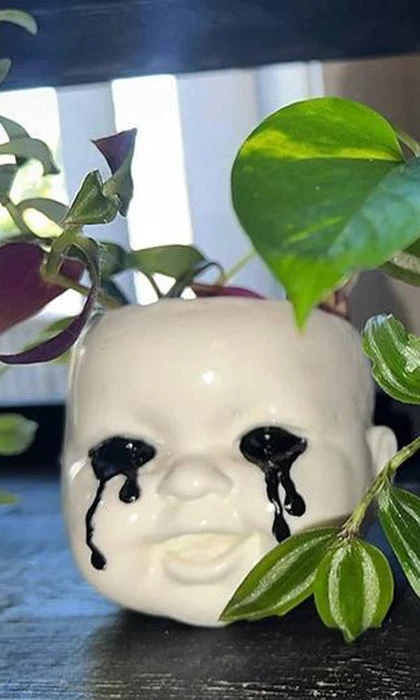 Add a touch of spook to your home and garden with this Doll Head White Planter!