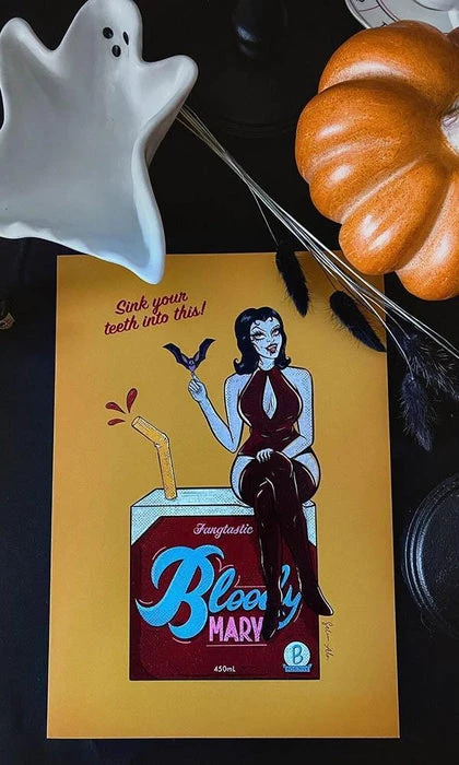 Thirsty? Miss Mary and Fangtastic have created one of the tastiest cocktails around! Flavour Profile⦠B Positive! This high quality print features an original retro design and is a great addition to your wall or the perfect gift for any Halloween lover!