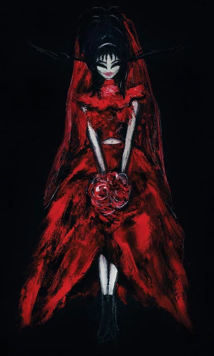 Original gouache painting inspired by Tim Burtonβs infamous character Lydia Deetz from the most loved film Beetlejuice.