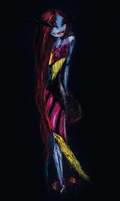 Original gouache painting inspired by Tim Burtonβs infamous character Sally from the Halloween cult classic film Nightmare Before Christmas.