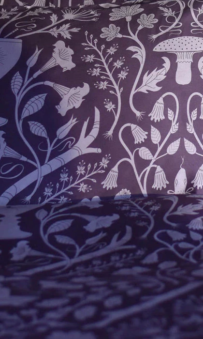 Dream in the mystical splendor of soft cotton Alchemy sheets in a royal purple hue,