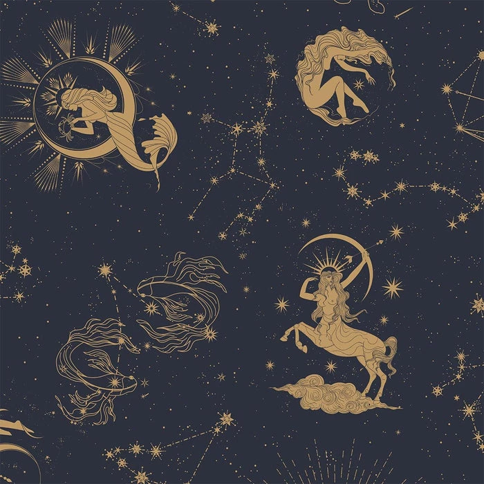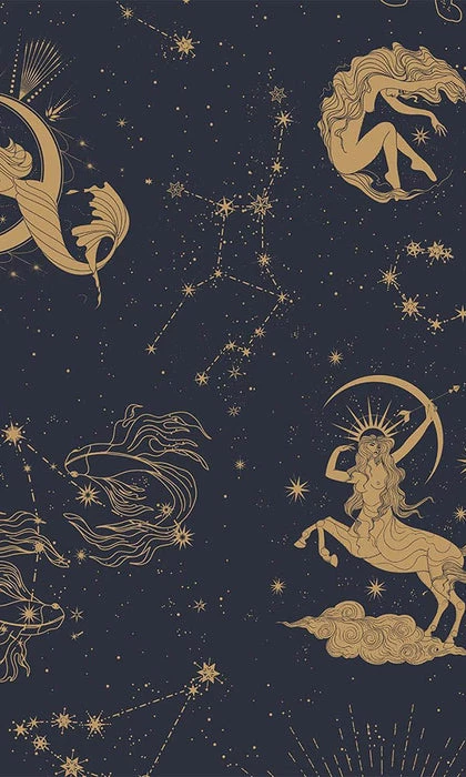 Cocorrina’s enchanted artistry brings a magical air to your universe with golden Zodiac goddesses on a backdrop of midnight blue. Itโs a print that speaks to your mysterious side, while showing off your playful side!
