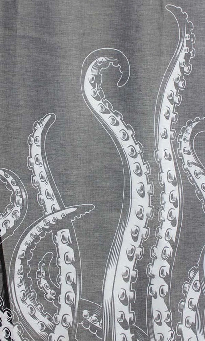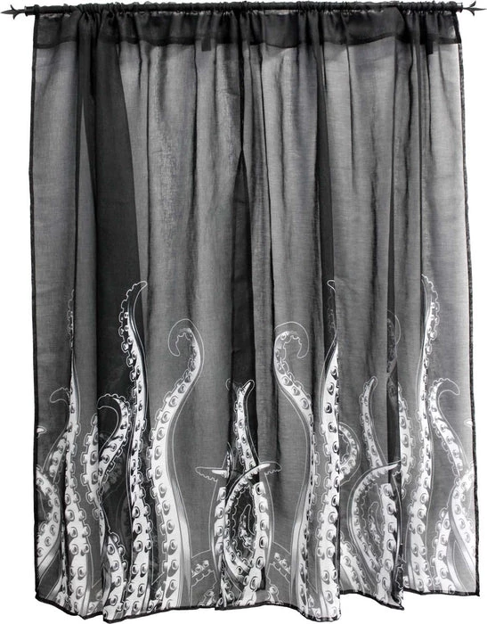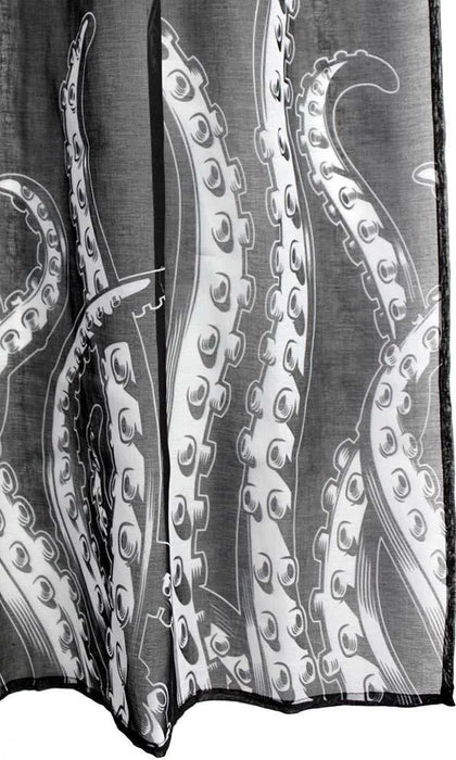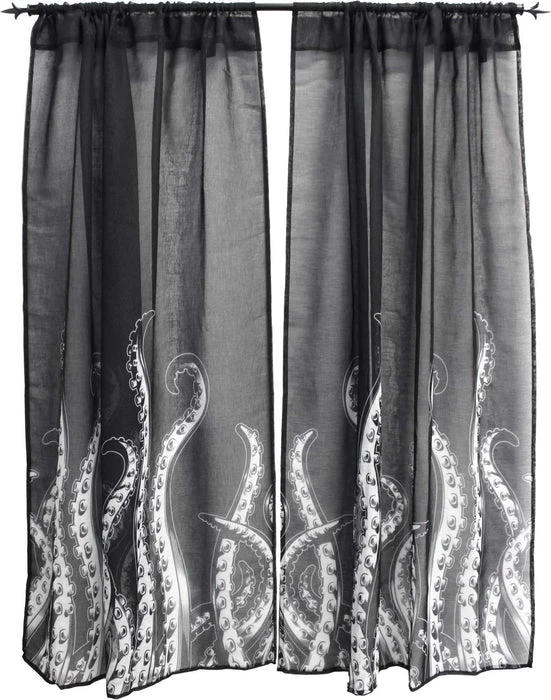 We had to travel to the depths of the ocean to bring you these new Tentacles Window Curtains! These AMAZING curtains feature the popular Sourpuss designed tentacles, printed on black, semi-sheer curtains. They are sold in a set of two and have a tunnel at the top for your curtain rod.
