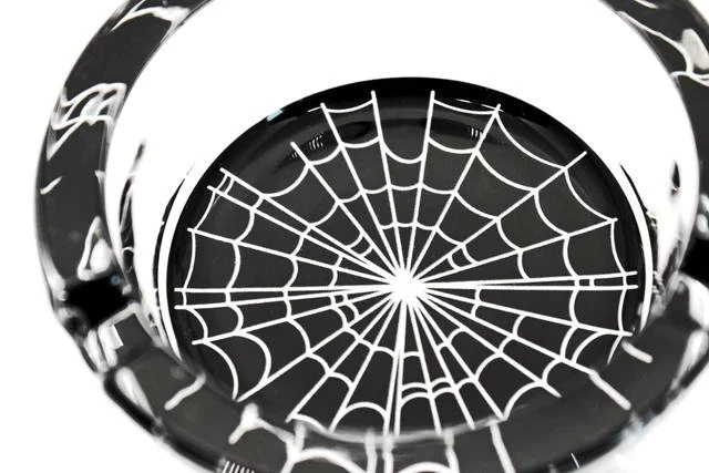 You can never have too many household items with spiderwebs, and the new ashtray is the perfect addition! The new Spiderweb ashtray is made out of glass and has a fully printed spiderweb bottom.