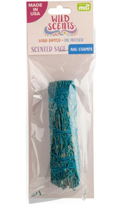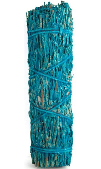 Hand-bound scented cleansing stick made of blue sage leaves and stems, infused with nag champa oil